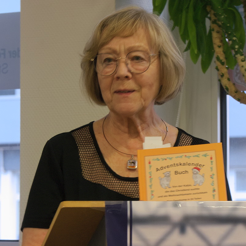 Friedrun Jäger stimmte mit ihrer Lesung aus ihrem Adventsbuch „Zwergenweihnacht“ auf die bevorstehende Advents- und Weihnachtszeit ein. In diesem Buch erzählt sie in 24 Kapiteln die Vorbereitung der Waldtiere auf ein großes Weihnachtsfest, Das Werk ist mit zauberhaften Zeichnungen bebildert.
