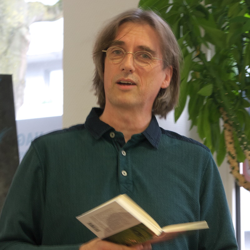 Der zweite Vorsitzende des Autorenkreises, Peter Coon, trug einen Ausschnitt aus seinem Buch „Entgrenzt“ vor, das die Begegnung eines mit menschlichen Zügen programmierten Roboters mit Menschen erzählt.
