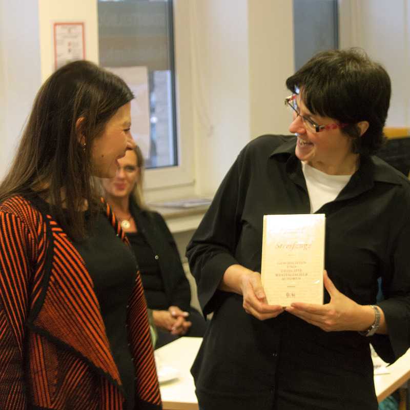 Zum Abschied der Veranstaltung überreichte die Vorsitzende des Vereins, Velina van der Gaag, der Leiterin der Stadtteilbücherei eine Anthologie des Autorenkreises, die nun Aufnahme in der Bücherei fand und somit deren Besuchern zur Verfügung steht.